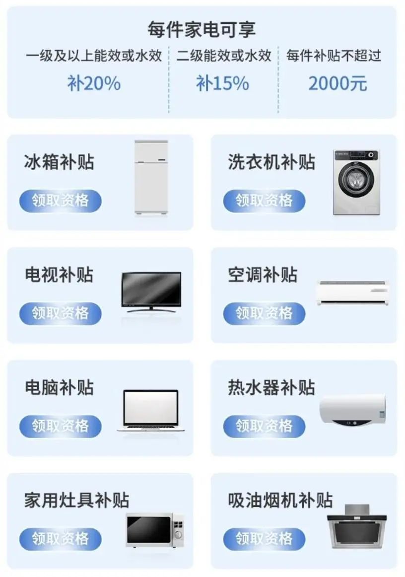 (个人消费者领取品类对应补贴资格,同一品类到账两张,仅能使用一张,领取后请在有效期内尽快核销使用。)