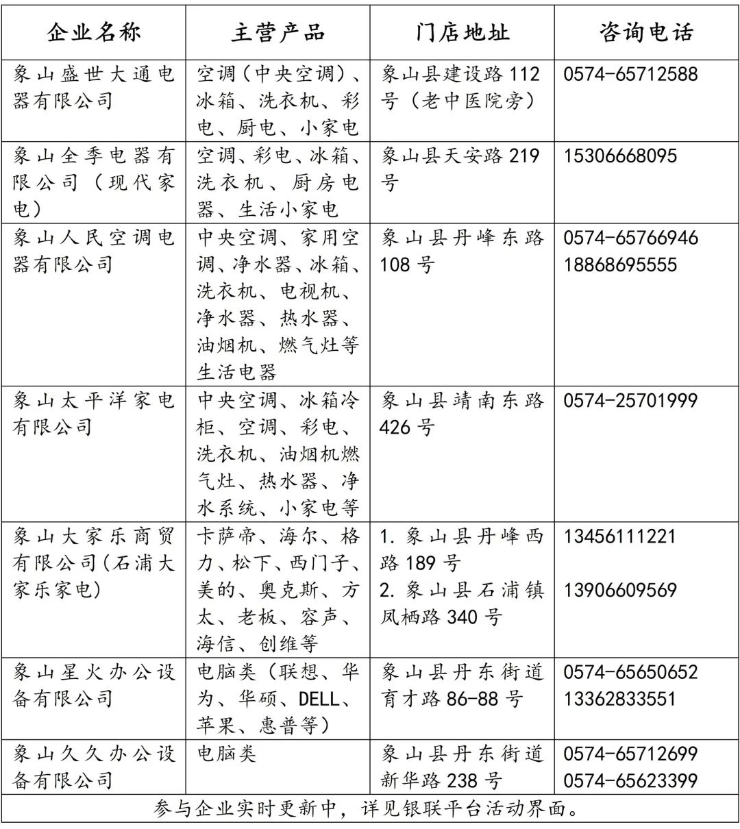 近日将发布象山县家电(智能家居)消费补贴参与企业的公开征集公告,敬请留意。