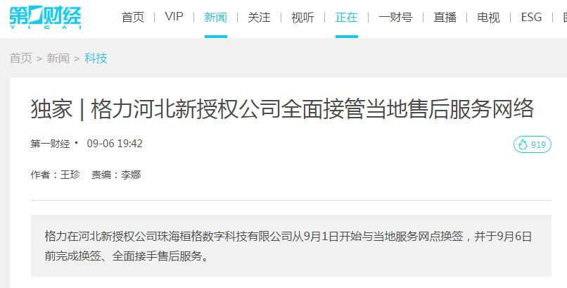 8月22日,格力电器公开宣布授权珠海桓格数字科技有限公司为河北省新的代理 商。