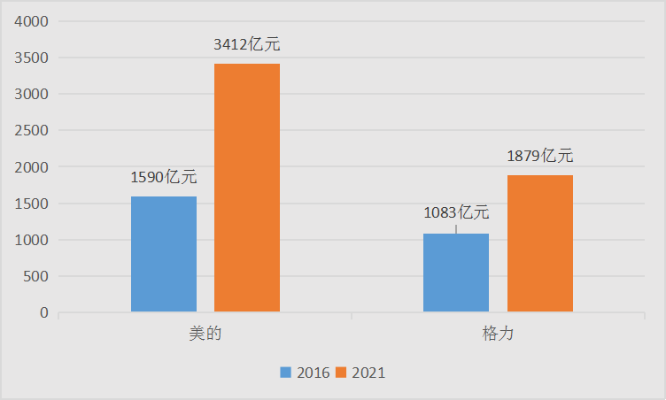 数据显示,2016年-2021年,美的的营收从1590亿元增长至3412亿,复合增长16.5%。