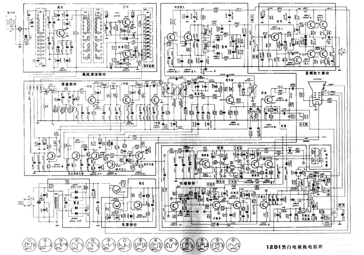 把12D1电视机有问题的地方都进行了维修,更换了一支伴音鉴频二极管,更换了场幅、场线性可调电,更换了电源滤波电解电容,将机壳起翘的面板用胶水胶牢,最后将机芯装进机壳,接通电源,用机上的拉杆天线接收图像清晰