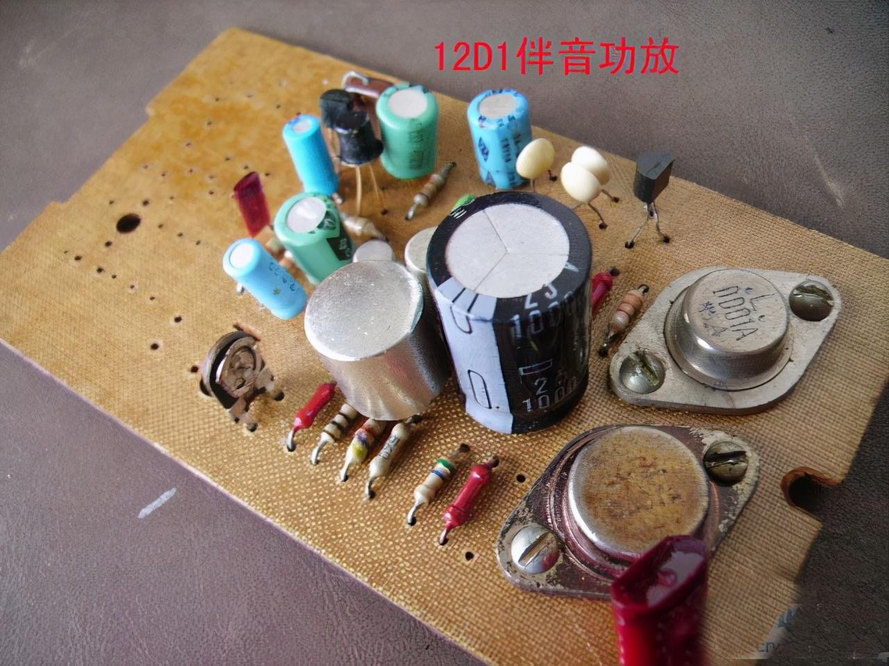 70年代末到80年代初,组装12D1电视机是一个潮流,许多厂商都加入到DIY产品的制造中,当时有成套的12D1电视机电阻、电容和中周买,不难看出这台机的印刷电路板买的成品印刷版,中周也是买的成套产品,电阻、电容、晶体管等是零星购买的。