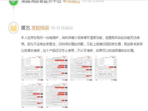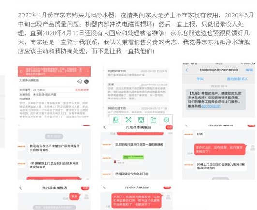 5月23日,名为“白雪飘飘wj2011”的用户在黑猫投诉上发布“九阳豆浆机网红产品高故障率质量严重问题,第一批用户做了小白鼠,被售后拒绝保修!!”投诉帖。