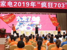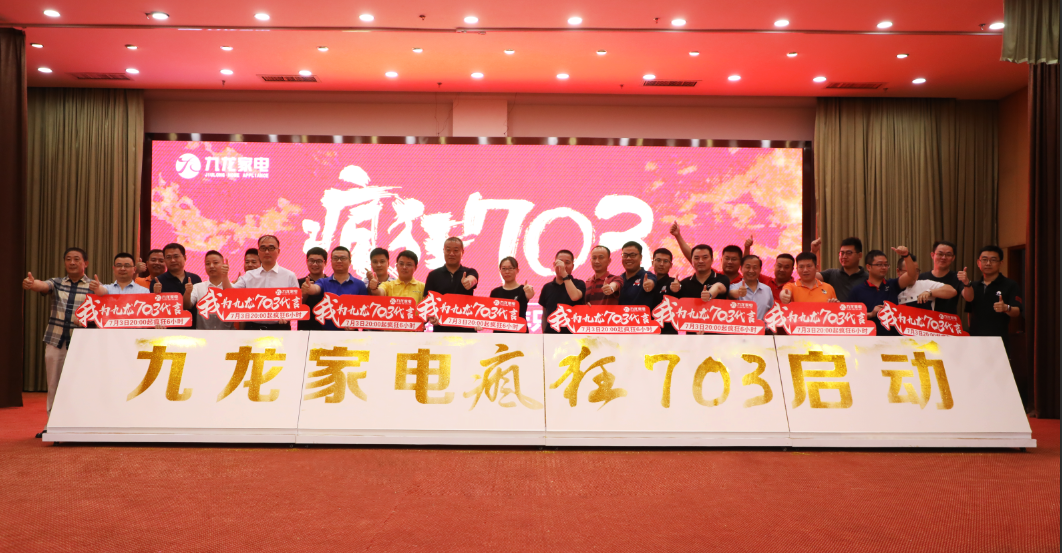 6月19日清晨,在运河宾馆的会议室里,来自九龙贵和集团各门店、各岗位的员工以及多家电器品牌齐聚一堂,同为九龙疯狂703活动加油助力!