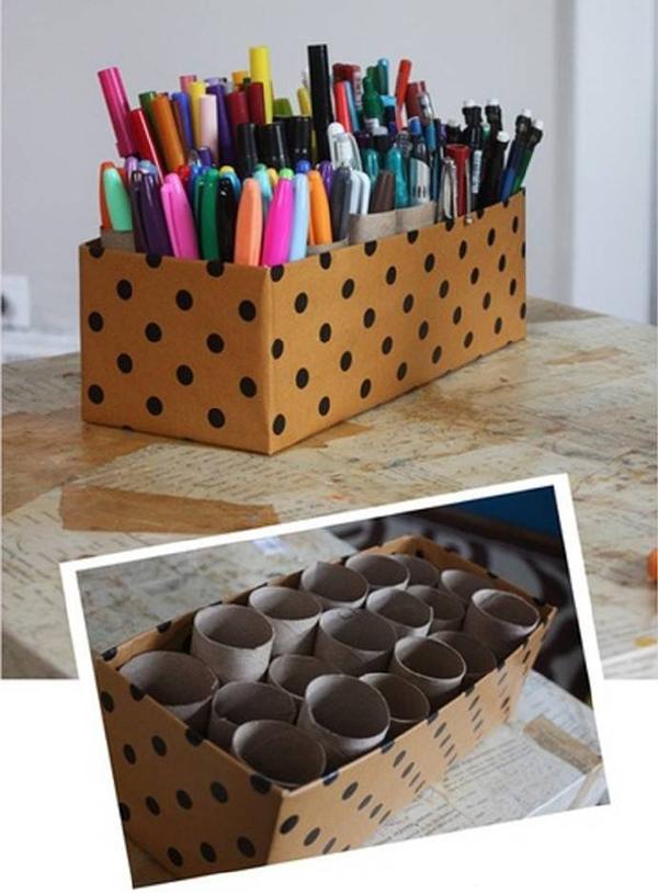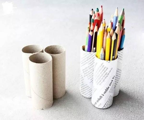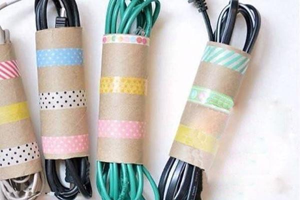 说完装饰品,来点实际点的。数据线的收纳盒或笔筒!家里的电线或笔太多,每次找东西都太乱,用一个盒子将这些纸筒装起来,然后将线缠好放在纸筒里,这样方便多了。