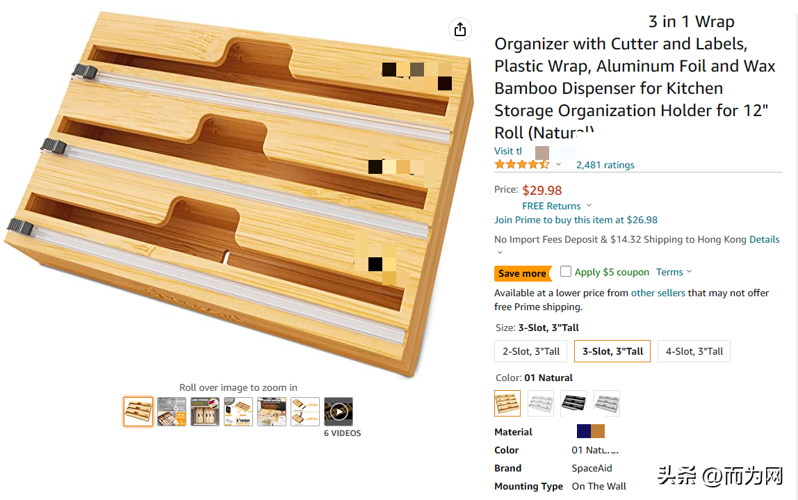 wrap dispenser除了是保鲜膜/烘焙纸分割器,还可作为一个小小的卷筒用具收纳盒,只是需要注意尺寸。