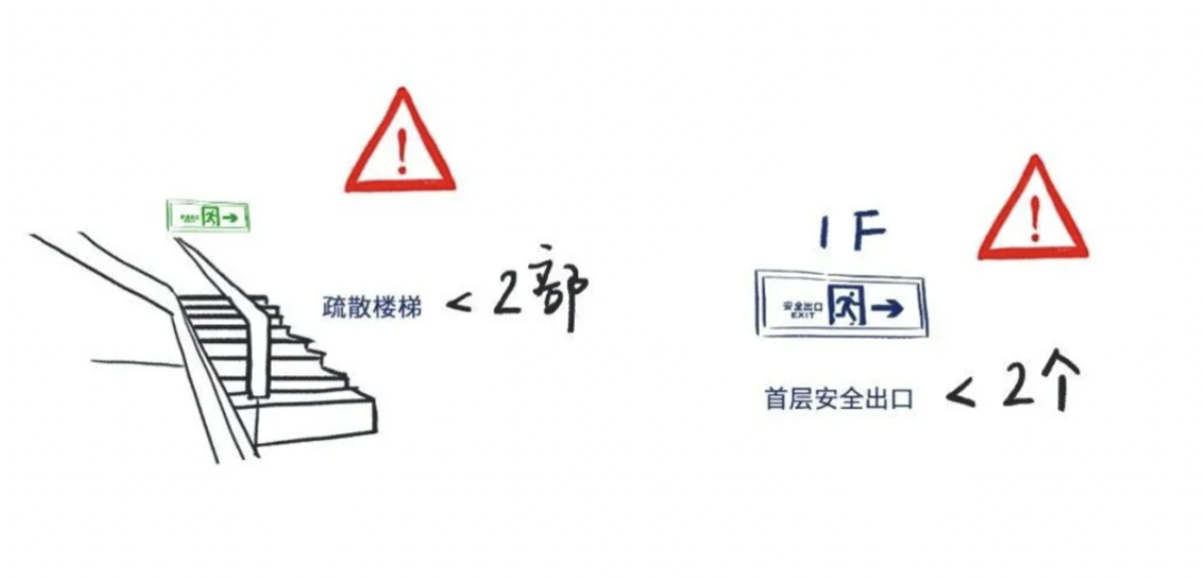 每层建筑面积超过200平方米的自建房、屋顶承重构件和楼板为可燃材料的自建房、建筑层数为4层及以上的自建房,其疏散楼梯少于2部,首层安全出口少于2个,存在极大的消防安全隐患。