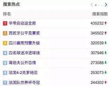 在决赛结束后的一天之内,“华帝退全款”已经在微博热搜升至第二名,在百度搜索热点中升至第一名。