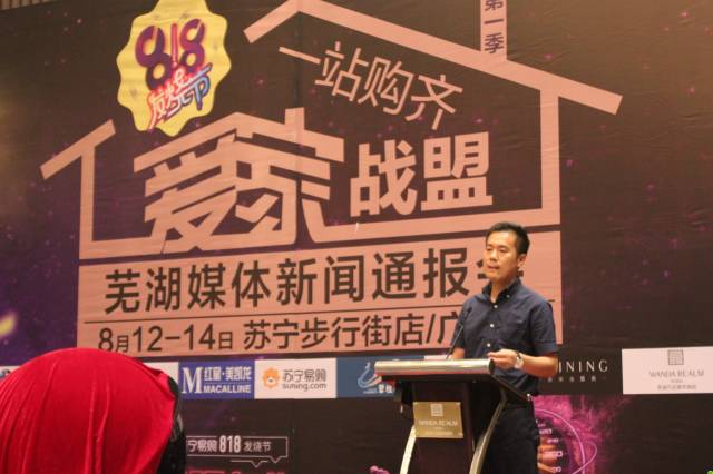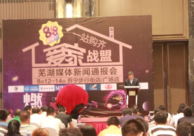 8月9日,苏宁818为爱发烧,爱家战盟第一季启动仪式媒体新闻通报会在万达嘉华酒店如期举行,此次苏宁818发烧节重磅邀请了红星美凯龙、碧桂园、荣欣装饰、万达嘉华酒店、中国国旅、宝马汽车、喜来也婚典、丘比特婚纱摄影等8个行业翘楚一起为爱发烧 ,打造江城地产家居、家电汽车、建材装饰、婚庆摄影酒店旅游一条龙价格标杆,组建成芜湖最大最全最强的一站式选购平台,为爱家的芜湖人打造一个家的春天,为喜欢简单的年轻人塑造一个理想的置家模式。