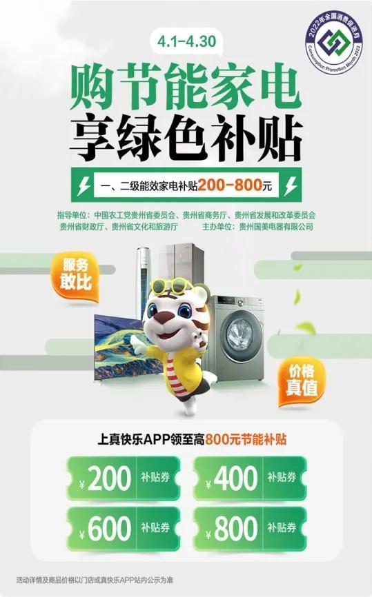 黔东南州2022年消费促进月真快乐APP和国美电器家电双补贴让利