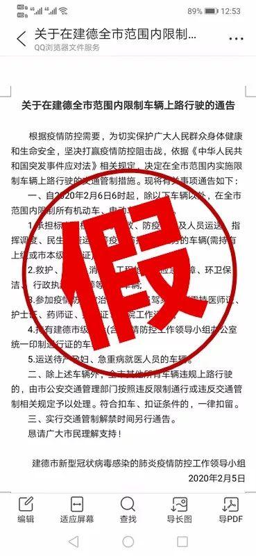 “关于在建德全市范围内限制车辆上路行驶的通告”系谣言!