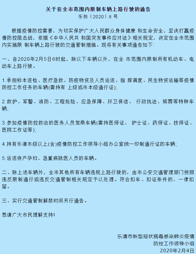 消息来源信息是乐清市疫情工作领导小组相关通告: