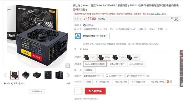 安钛克 EAG500 PRO电源采用半模组的设计,累计评价为1.3W+,其中有四款产品的评价,好评率为98%。