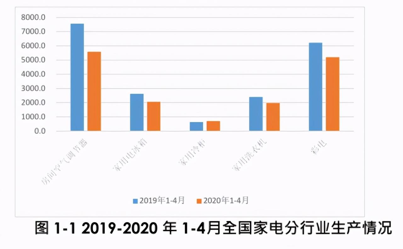 从生产端整体情况看·新冠肺炎疫情影响下大量家电生产企业停工停产·居家隔离等措施影响下家电消费市场低迷全国家电产品产量明显下降。根据国家统计局数据,2020年1-4月,全国家电(包括空调器、家用电冰箱、家用冷柜、家用洗衣机、彩电)产量15508.9万台,相较于上年同期同比降20.1%。
