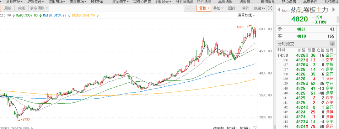 而钢板的价格,我们以热轧卷板的期货价格为例,也从去年的3500元左右,涨到了现在的5000元左右,涨幅在四成左右。