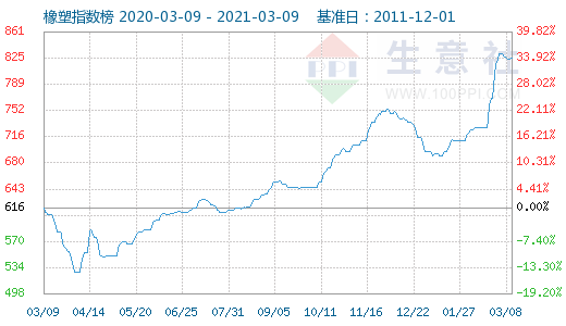 塑料的平均价格是涨幅最小的。记者查询生意社数据显示,塑料的平均价格也较之一年前上涨了三成左右。