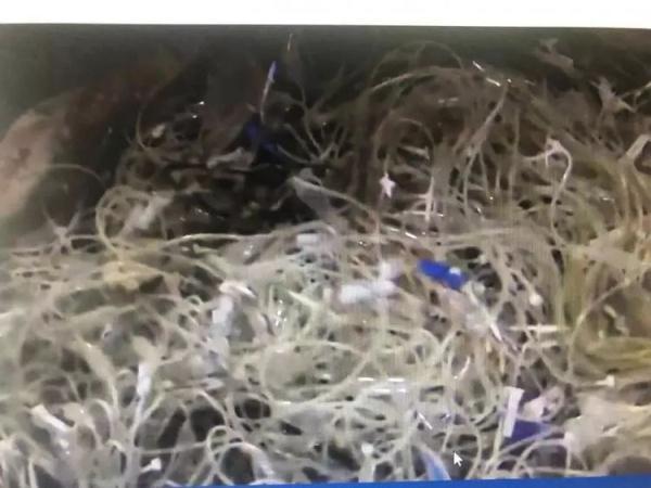 输液瓶、输液袋、一次性注射器、血包等多种医疗废物,这些本应该被集中无害化处置的医疗废物,记者在河南、山东、陕西等地调查发现,它们竟被加工成了破碎料等待出售。在河北的几个废旧塑料市场,医疗垃圾破碎料,甚至是输液管等医疗废物,在这里被随意买卖。