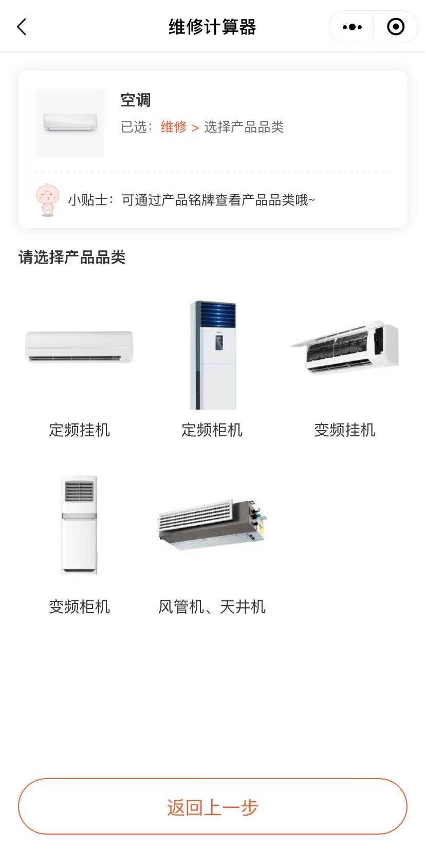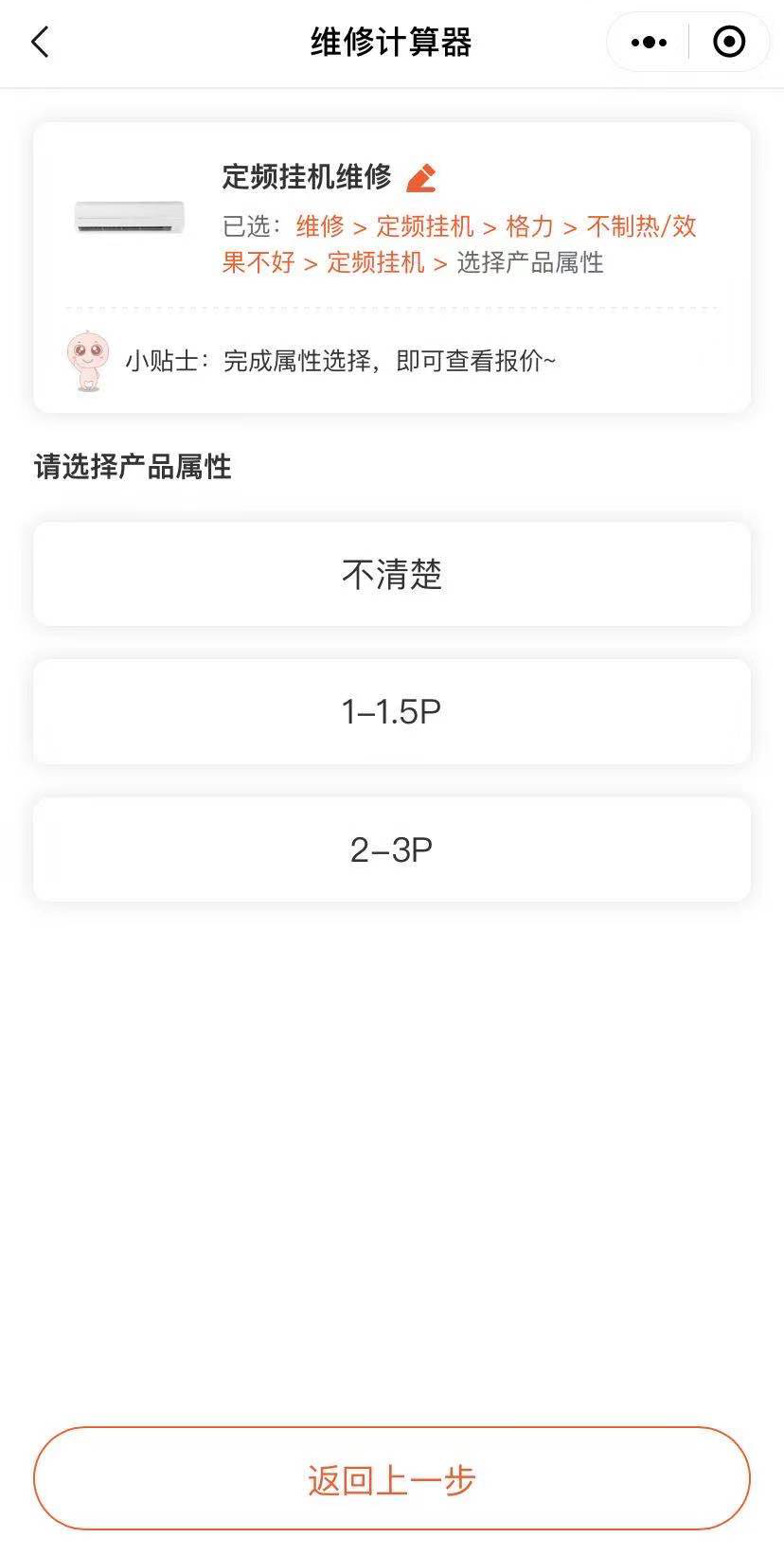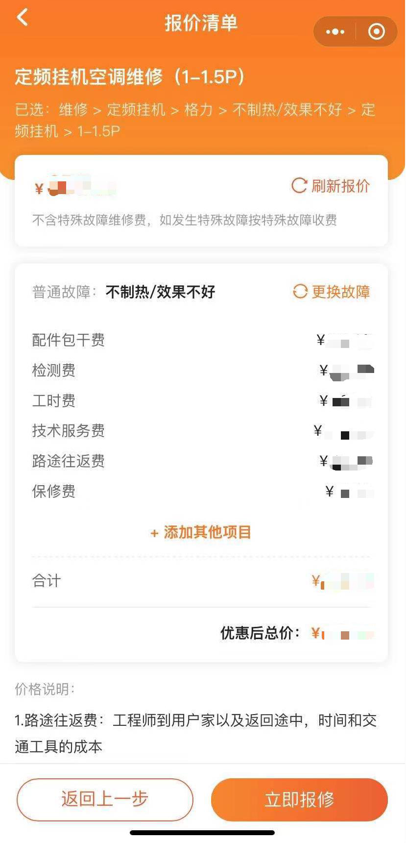 然后根据选择电器品牌、故障表现等选项进行智能计价,