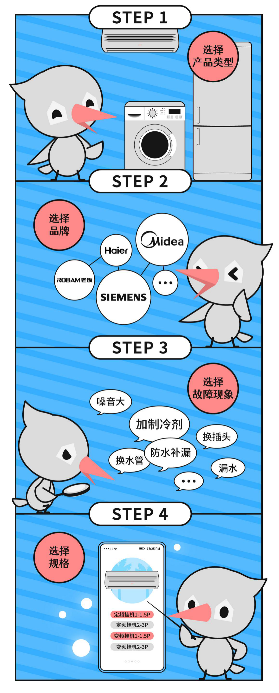 然后根据需要维修的品类进行选择,比如空调、洗衣机、燃气灶等。