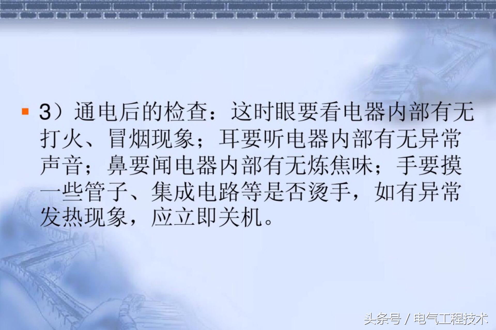 谈起电子电路,相信很多的电子电工师傅都很熟悉,对于电子电路老师傅而言,排查电子电路故障并非难事,一般情况下很快就可以找出故障点,但是对于大多数的初学者而言,都普遍有无从下手的经历,当然,电子电路维修除了要有比较丰富的实践经验外,还应具备很扎实的理论知识和一定的逻辑推理能力,除此之外,掌握适合自己的电子电路故障排查方法也是非常有必要的,有了一定的故障排查方法,可以让我们的故障排查更加的清晰化和系统化,自然的,排查故障的效率也会跟着提高,常见的维修方法有看,摸,听,测量等等,今天我们就来看一看电子电工老师傅总结的19个故障排查方法,适合自己的就是最好的: