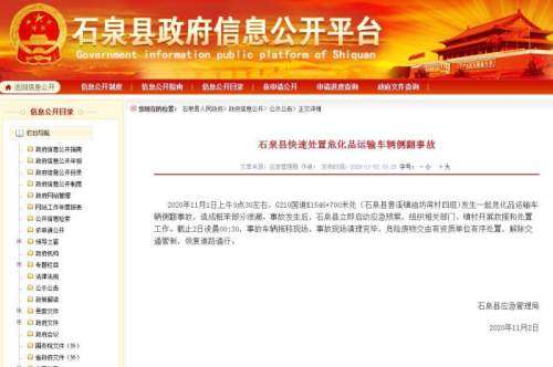 ●陕西石泉一危化品运输车侧翻致粗苯泄漏 已清理完毕