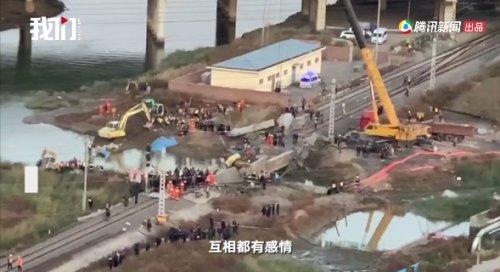 ●11月1日上午,维修公司万码车间在更换铁路桥枕线路中修作业时发生坍塌事故。更换桥枕的主要施工步骤为:拆除影响更换桥枕轨道连接设备、移出钢轨、挖掘机移出桥枕、人工配合挖掘机平碴、挖掘机放入新桥枕、安装钢轨及扣件、人工回填道砟并捣固、检查线路确认开通。坍塌事故发生时,正在进行桥上人工配合小型挖掘机平碴作业。该桥总长度32.54米(坍塌长度24米)、宽4米、厚度0.7米,桥梁悬空高度约3米,桥下为大沽排污河分支。