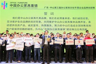 在昨天的启动仪式上,姚永红带领65个品牌共同宣誓:我们是中山办公家具代表品牌,我们在此郑重承诺:我们诚信经营,坚决维护各自品牌的良好形象,共同维护中山办公家具集体品牌声誉,承诺提供优质产品,诚实宣传,热情服务,努力把中山打造成全国销售商和用户最值得信赖的城市,为中山“中国办公家具重镇”建设做出应有贡献。