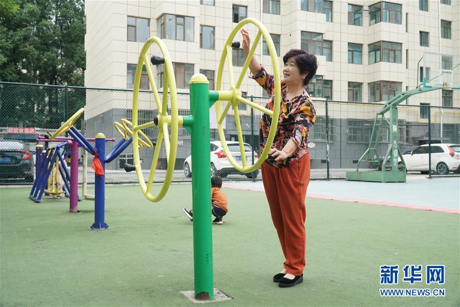 家住西宁市城西区彭家寨镇晨光村小区的史国青在小区新建的活动场所锻炼(8月22日摄)。 新华社记者 张子琪 摄