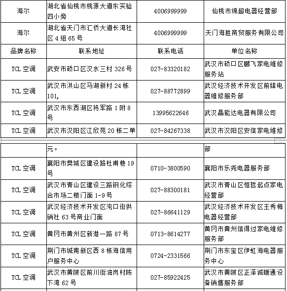 2020年品牌家电企业售后维修服务热线及授权维修服务网点名单