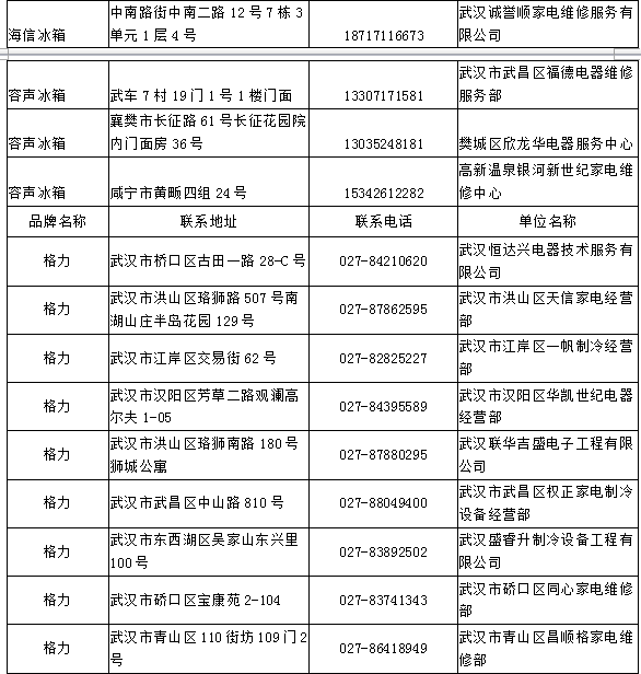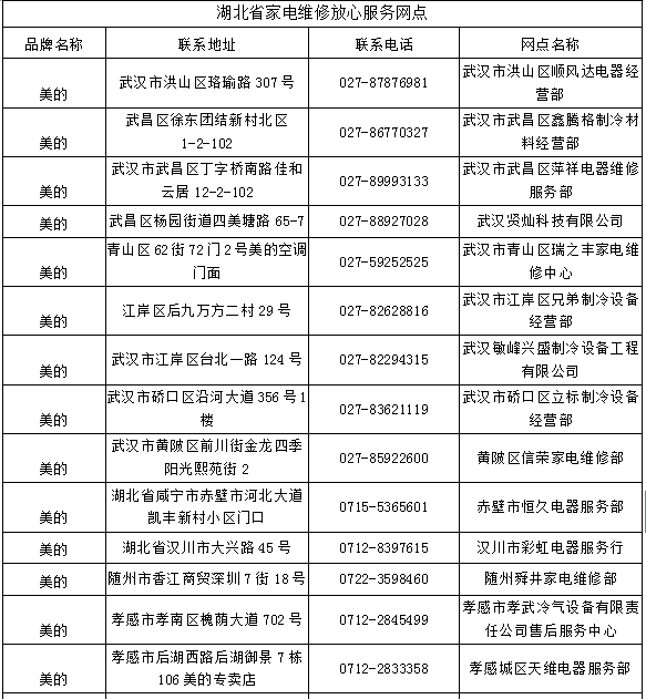 为进一步提高消费者的辨识能力,谨防家电维修"李鬼"趁虚而入,营造安全放心的消费环境,3月15日,湖北省消委联合省家电协会,首次发布了全省114家放心家电维修服务网点清单。具体有哪些,请看下图。