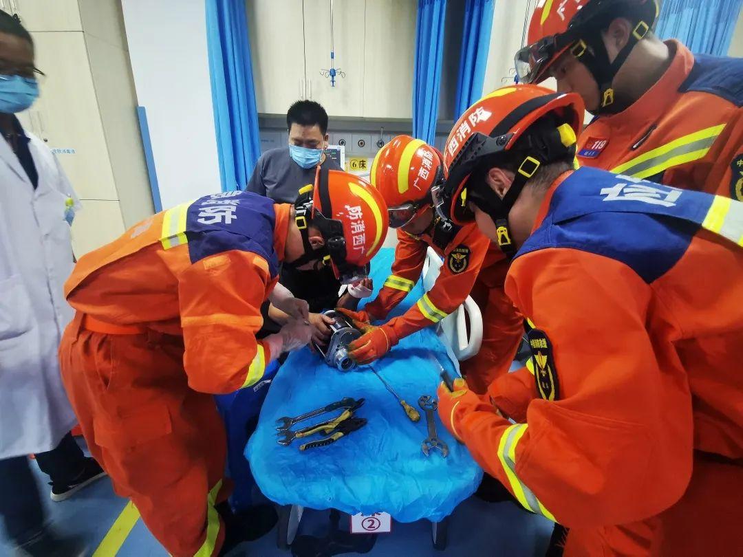 疼!疼!疼!群众手指被卡绞肉机,北海消防站接力救援