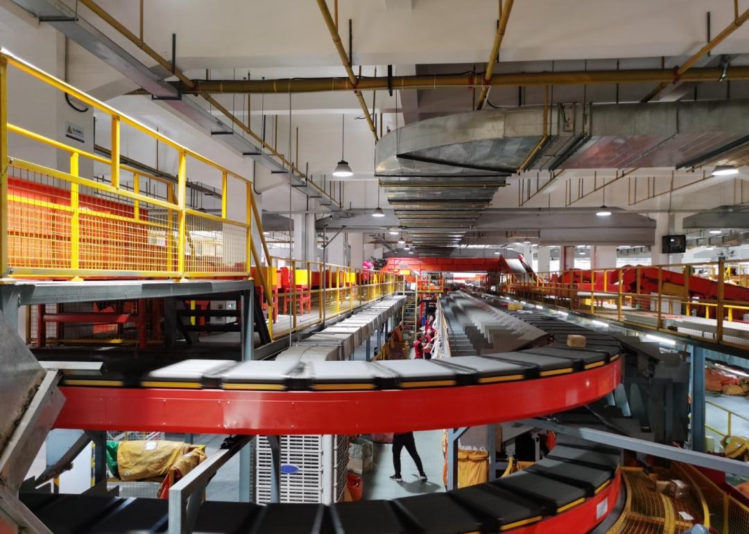 圆通速递揭阳转运中心分拣线有序运转。(资料图片)