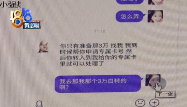俞女士:“她跟我说有活动,就是充多少送多少,她说的是充1万送9989,后来她说1万的名额没有了,就让我充3万,就是充3万返3万。”