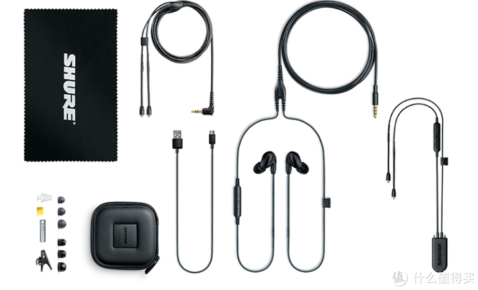 提供很多耳塞, 可以做到物理隔音。 飞机转接头估计5毛钱,黑海绵有毛刺。绕耳佩戴模式, 佩戴舒适。 那些歌手很多都是舒尔的客户, 当然人家是定制级的。