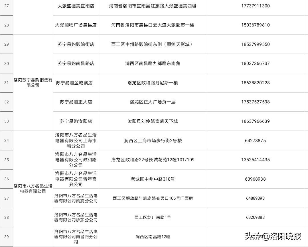 家电以旧换新!洛阳37个销售网点,地址、电话公布