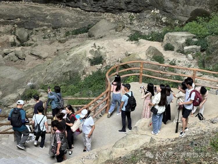 今年中秋假期,武隆全区累计接待游客45.61万人次,实现旅游综合收入1.4亿元。其中,武隆天生三桥景区和仙女山景区在中秋假期,吸引着上万游客来此观光旅游。