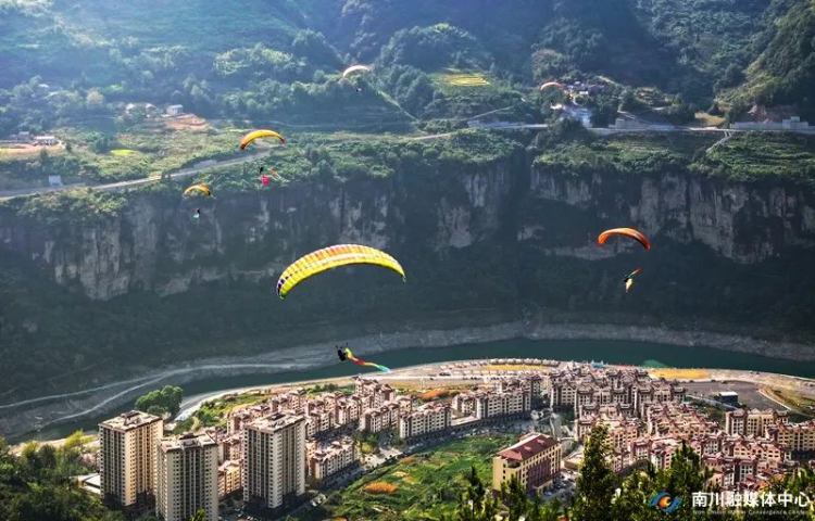位于头渡镇玉台村的金佛山航空飞行营地吸引了大批游客前来体验。
