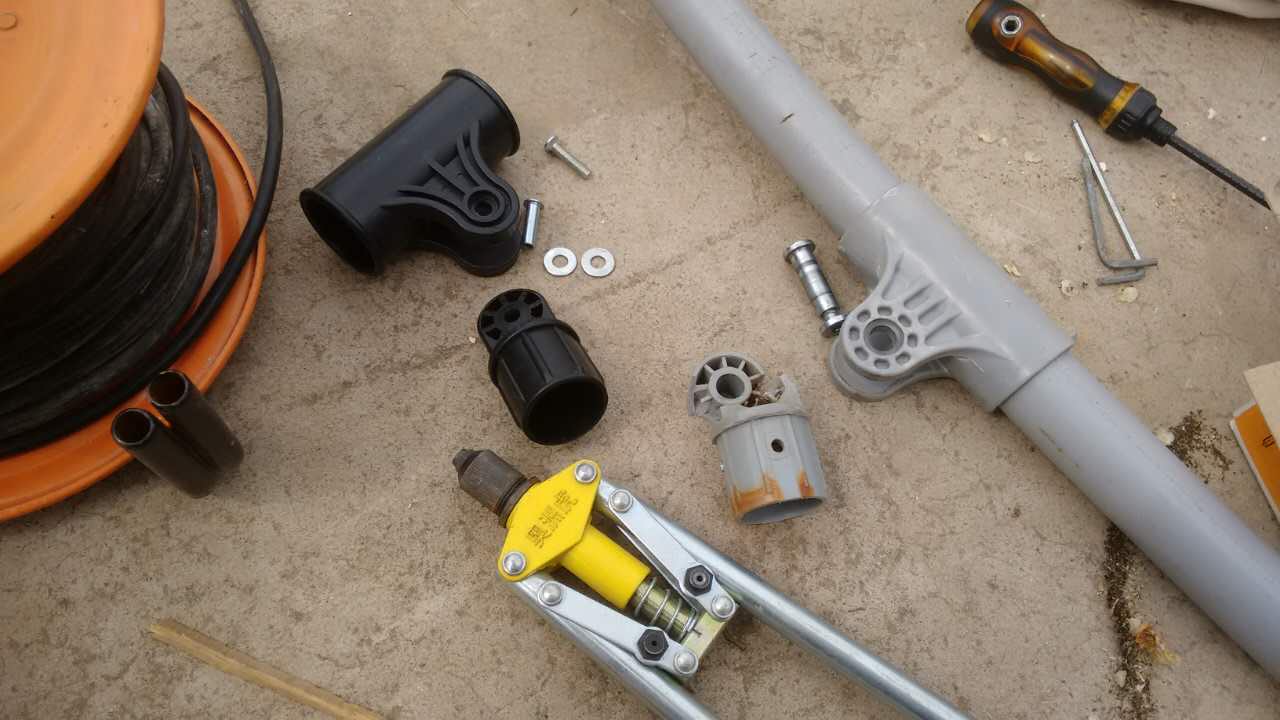 转向支架就是立柱顶端的那个零件,上某宝搜户外遮阳伞配件,很容易就能找到,问题是现在市面上大多零件是黑色的,宜家这款是定制的。因为我只是支架固定端断了,这个零件大多隐藏在里面,所以影响也不大,收货,开干!