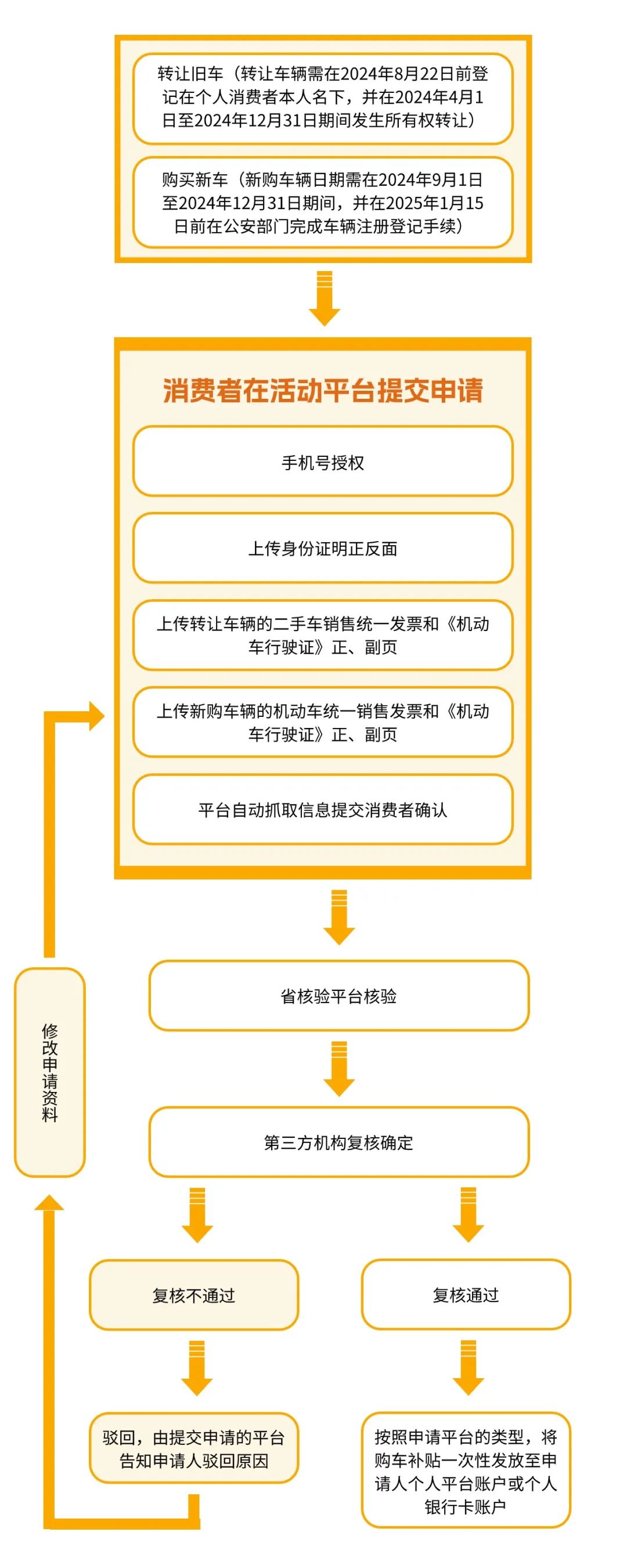 3.平台核验:省核验平台对消费者个人身份信息,二手车转让登记、新车注册登记信息,二手车和新车交易发票、个人消费者在全省申请补贴资格进行验证。