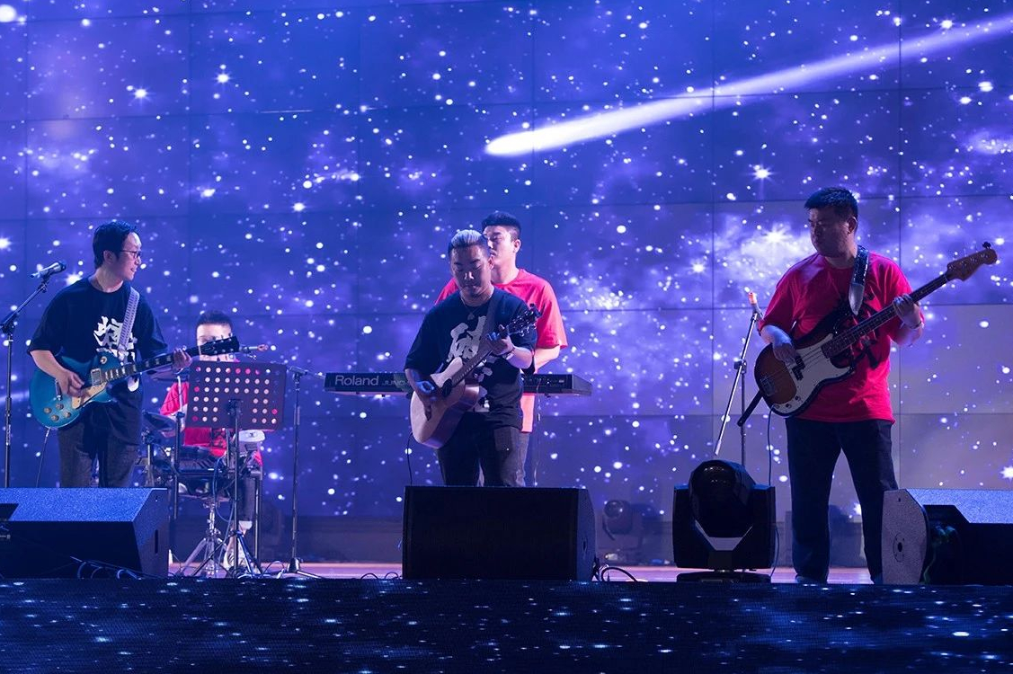 一语成真。星空乐队从成立之初一路走到现在,已经走过了13个年头。那晓东说,“没有园区主管和同仁们的支持,乐队也许走不到现在。”现在的乐队成员均受过专业培训,更有歌、舞、乐器等多面手。