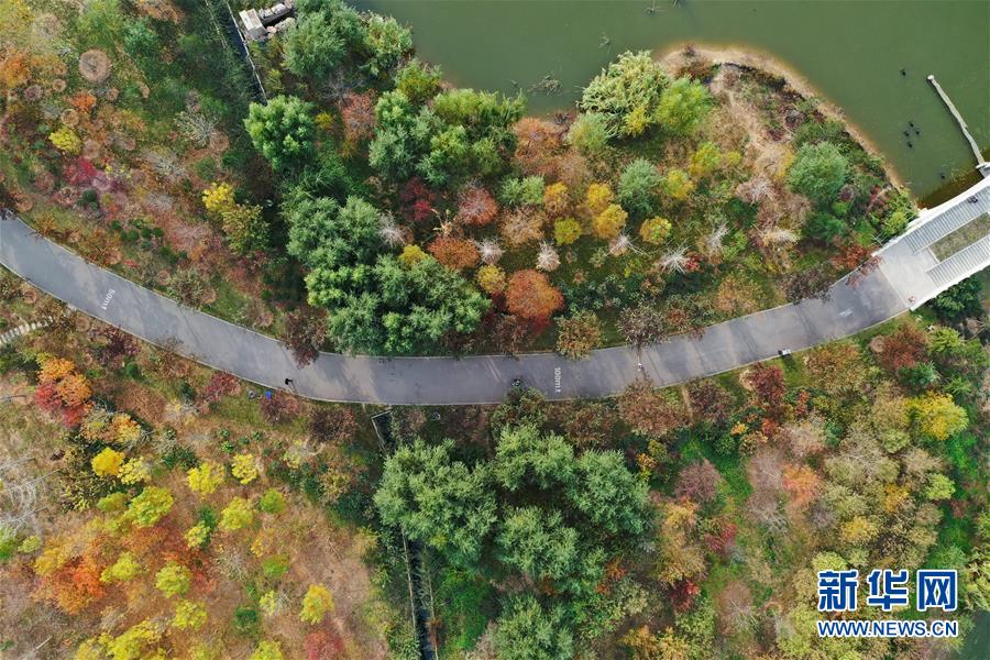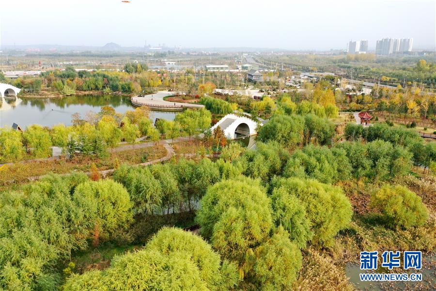 河北邯郸峰峰矿区由采煤沉陷区改造而成的清泉公园(11月12日无人机拍摄)。新华社记者 牟宇 摄
