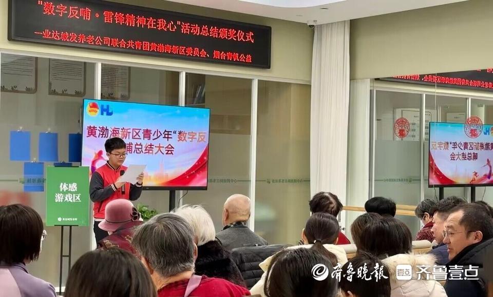 活动现场对寒假发起的黄渤海新区“数字反哺”智慧助老青少年志愿服务活动进行总结和颁奖
