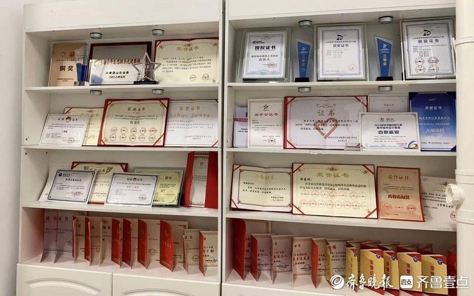 在烟台青帆公益发展中心的一面书架上,摆满了郭嘉程和团队获得的奖杯和证书