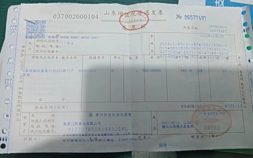 除此之外,刘女士还有一疑惑:“购买这台冰箱时,我支付了5800元现金,但是开给我的发票上显示金额是4999元,销售解释说是有优惠活动所以发票价格和实际价格不一样,这个我也不太明白是不是合理的。”