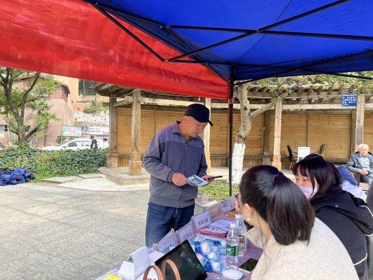 工作人员在给黄女士(左二)登记