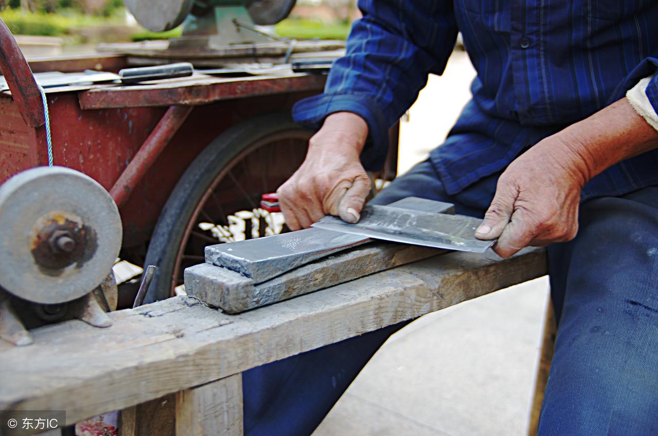 儿时,我是在“磨――剪子嘞――戗――菜刀――”,熟悉的调子里长大的。每天几乎都能看见扛着凳子外乡老汉,不定期地出现在各街口,把服务送到千家万户。岁月的皱纹,刻在他饱经风霜的脸上,深陷的双眼像黑珍珠闪闪发亮,筋脉突兀的手用力戗磨着菜刀,不时,用手指试探着磨快的锋刃,污垢的围裙散发着磨石浆和铁锈味。在完活的空隙间,拿出烟斗,拼命地抽上几口。