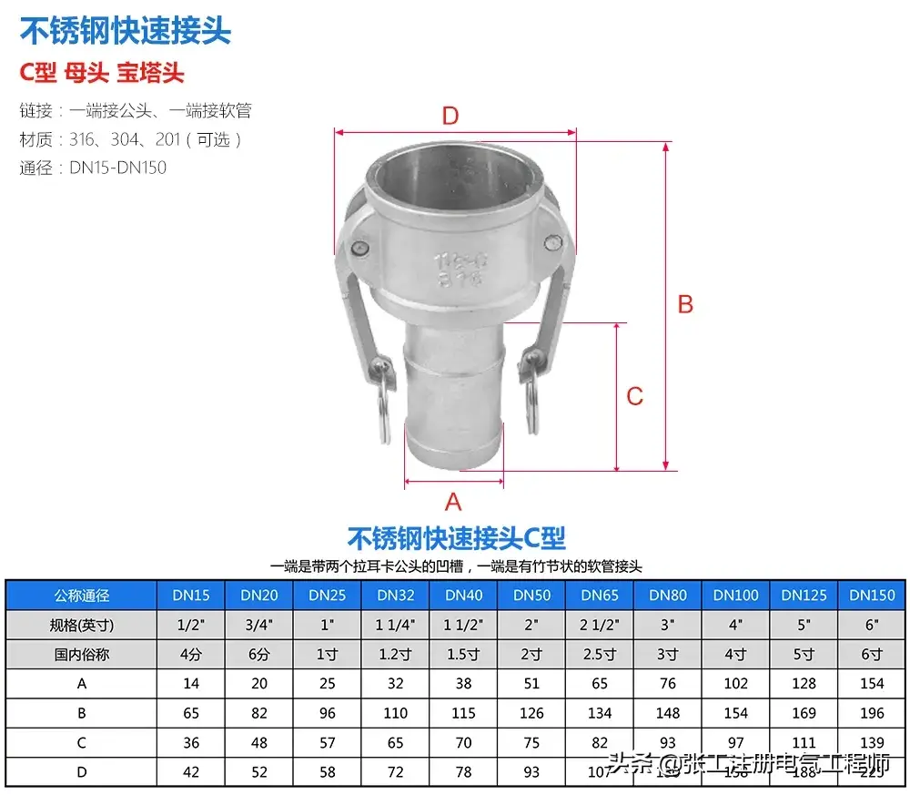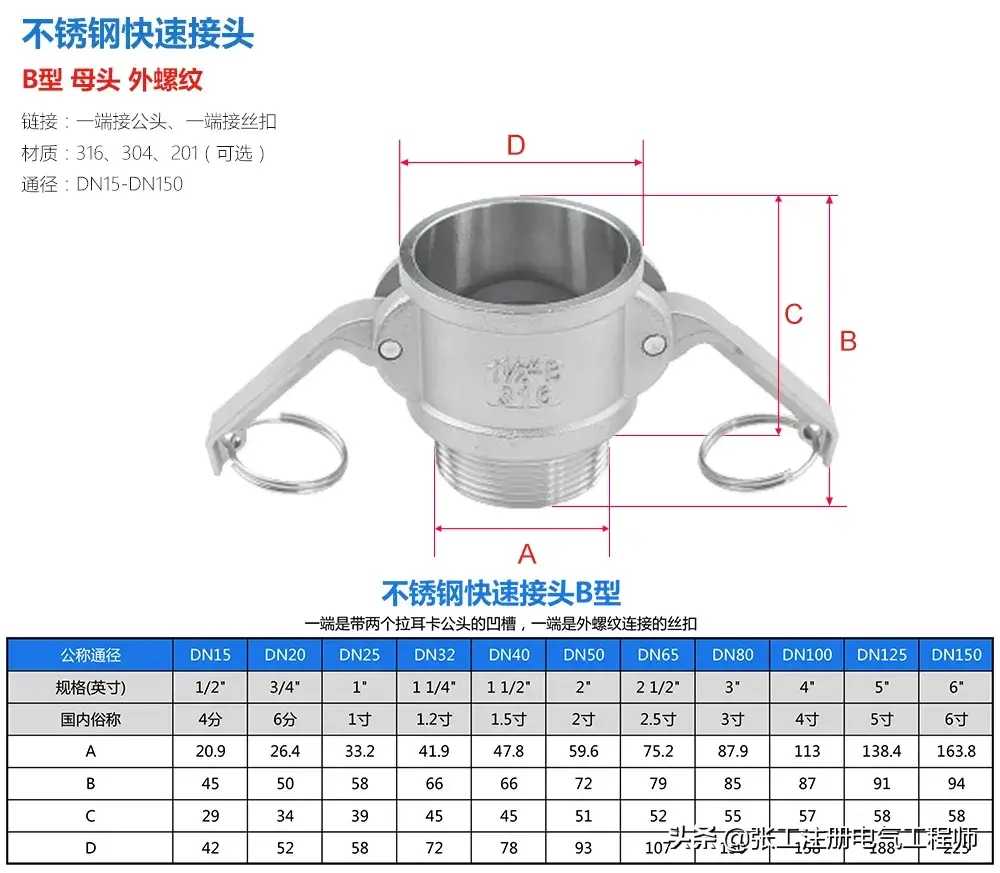 不锈钢快速接头知识大全 01、不锈钢快速接头型号、材料、规格以及使用范围