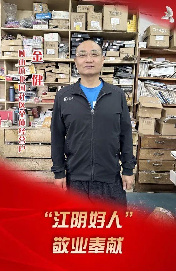 金健,男,1972年生,顾山镇北国社区个体经营户,电气修理师。虽然身有残疾,但金健始终保持着自立自强、积极向上的人生态度,他在电气修理行业深耕37年,脚踏实地地践行着工匠精神,练就了一手高超的修理技术。无论是家用电器还是工业电气方面,如果出现问题,只要找到他,他都尽己所能为顾客解决问题,并给出性价比高的解决方案,他的敬业与奉献在本地积累了极佳的口碑。凭着爱岗敬业的精神、自强不息的劲头和兢兢业业的投入,金健获得了江阴市优秀志愿者、江阴市残疾人自强先进个人、江阴市十佳自强模范等荣誉。