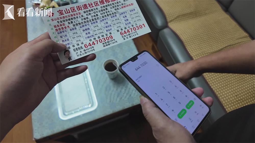 记者用陌生号码,拨打了徐先生拿到的小广告上的电话,表示想实地上门送修,但对方回复称“现在我们没找到合适的店铺”。而当记者追问“你们不是宝山区街道社区维修服务中心吗?怎么会没有店铺呢。”对方随后直接挂断。