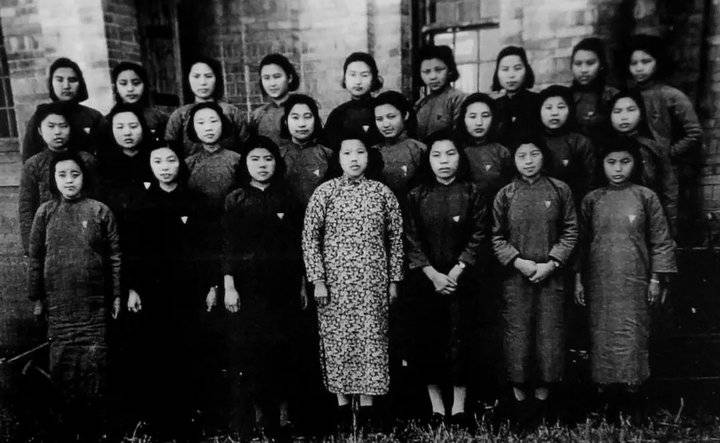 1944——1946年就读于昆明昆华女师的柯岩(前排左四)与同学们在一起的合影。